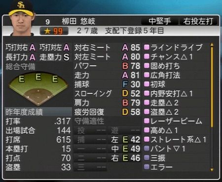 パワプロはホームラン数=パワーだから柳田Sは無いわ