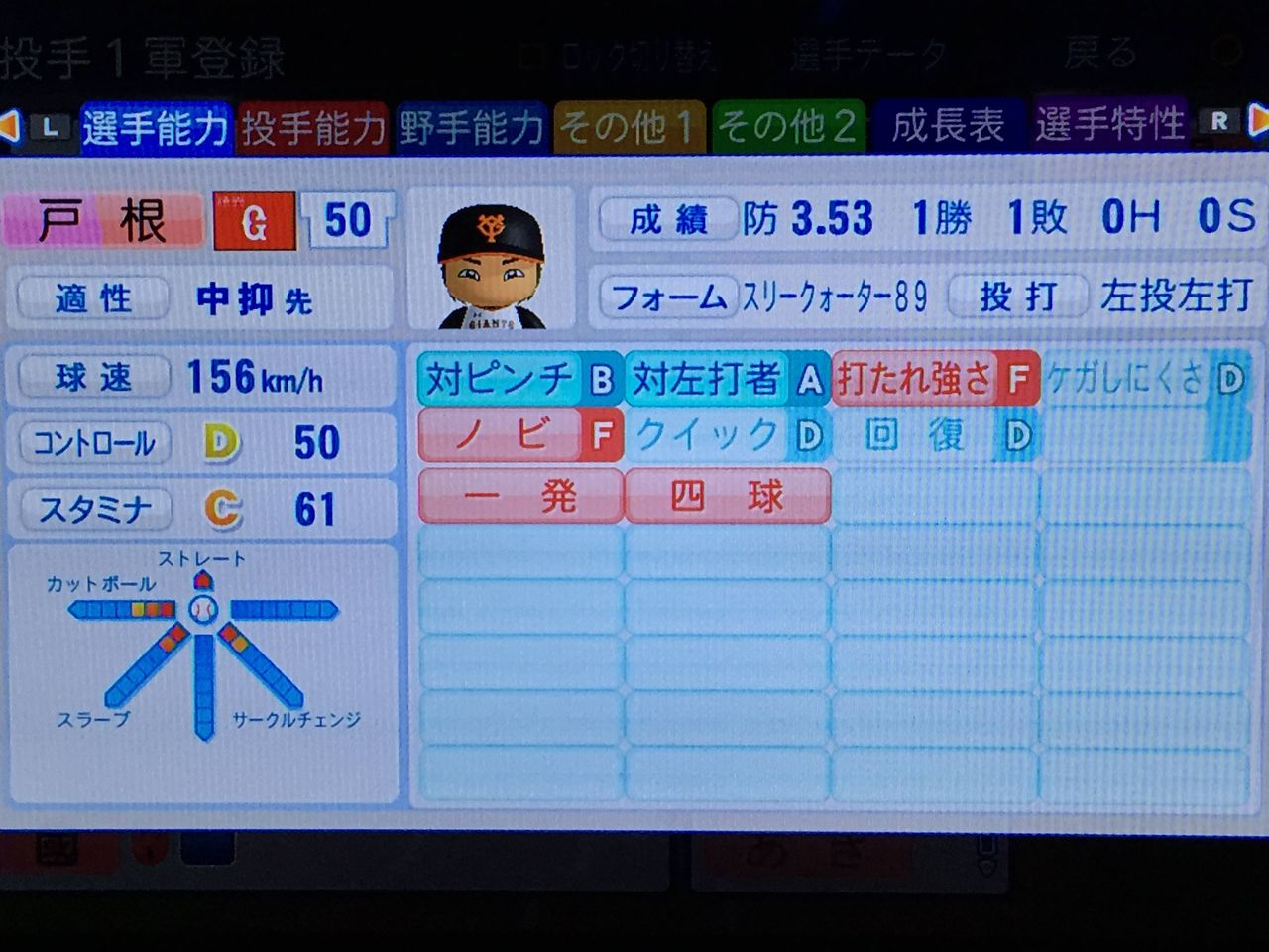 宍倉って中継ぎ適正あったっけ