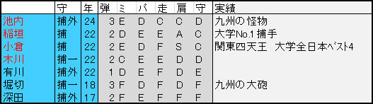 キャッチャー豊富らしいけど先発とかに有望株いた場合にキャッチャーに流れてくれるとありがたいが