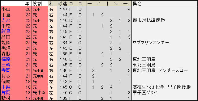 (*^◯^*) では投手から見ていくんだ!
