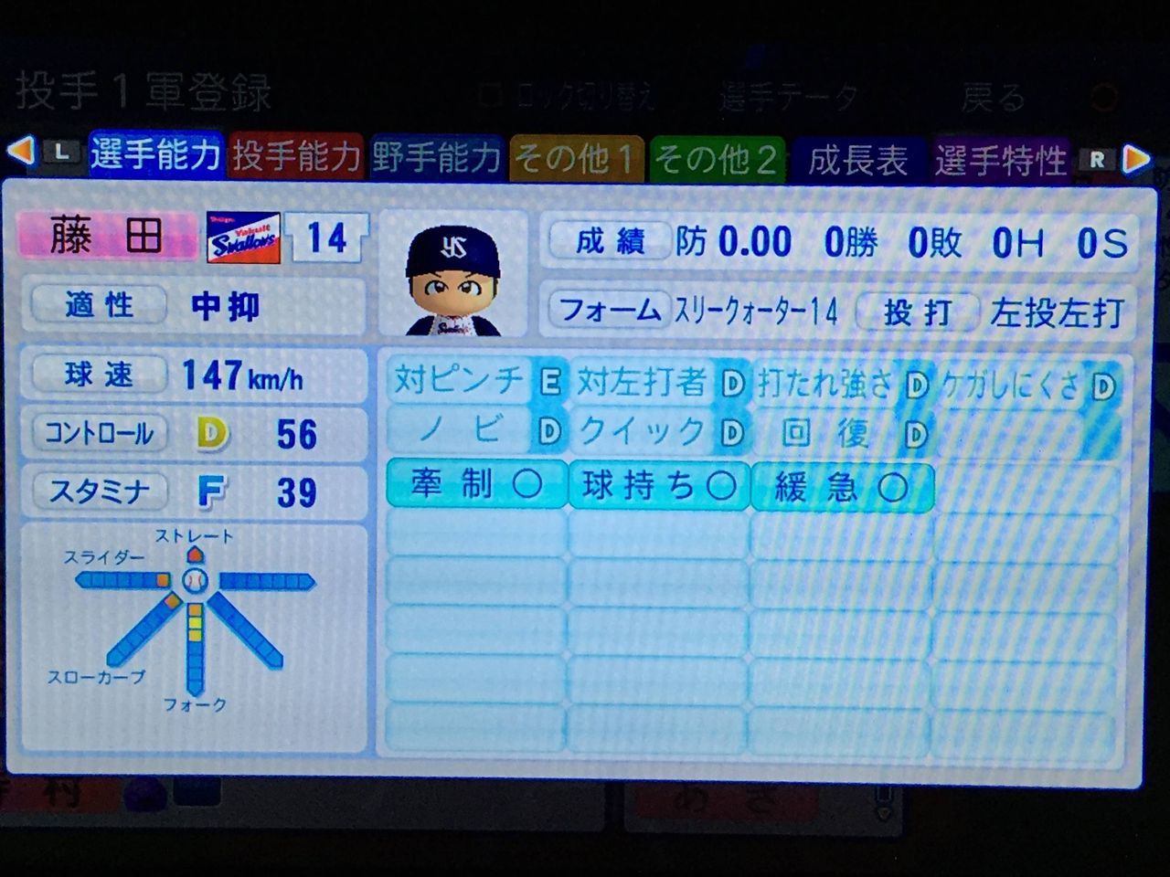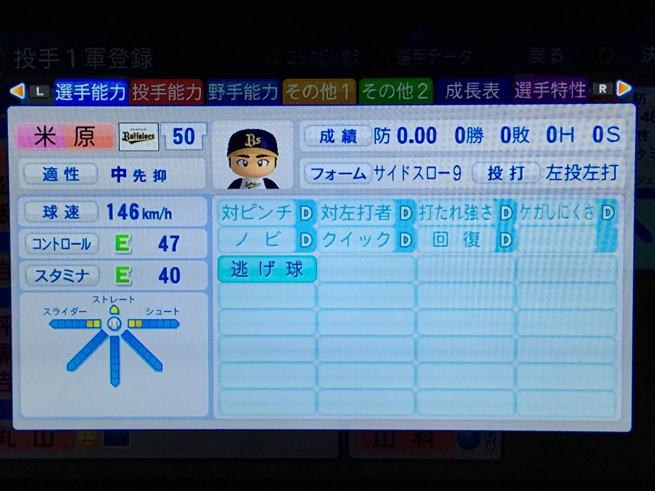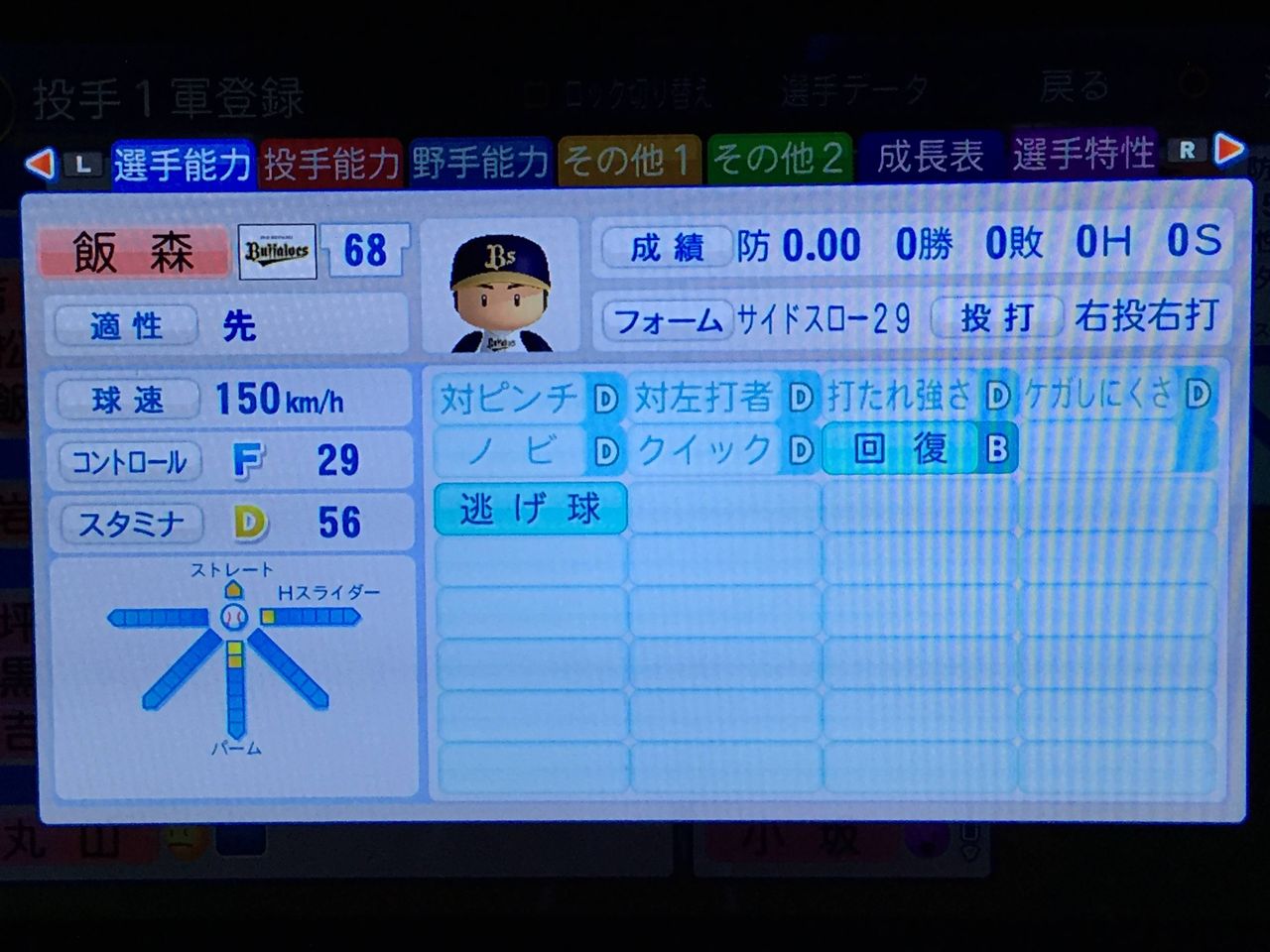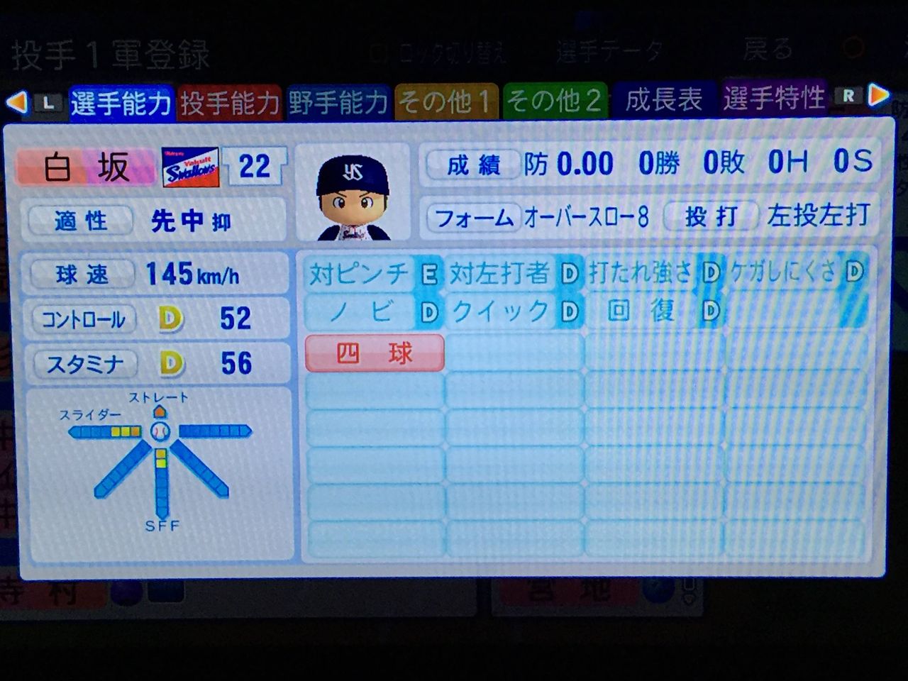 3戸叶(22、先) ロマン型先発。ノーコンだがそれ以外は完成度は高い