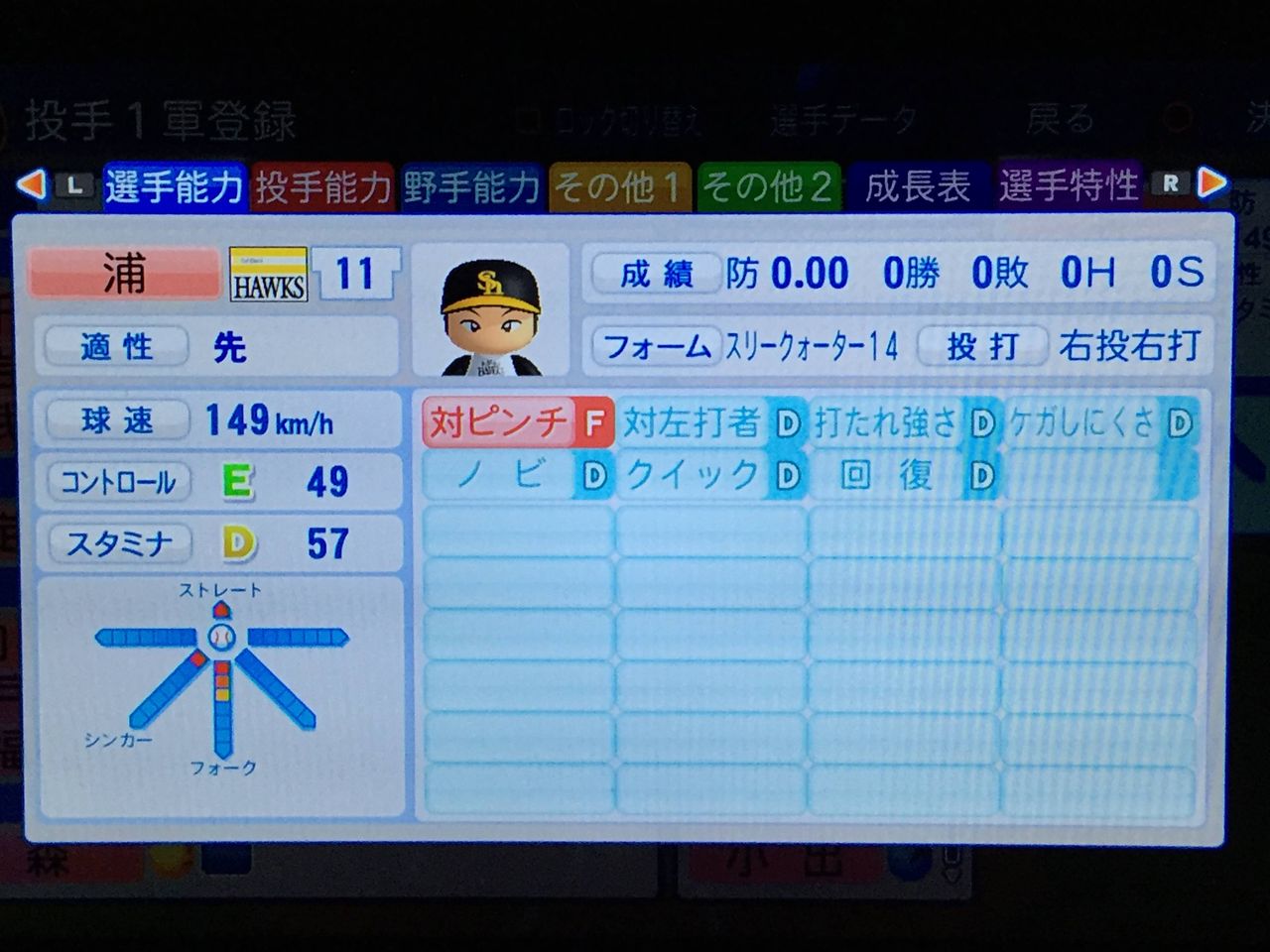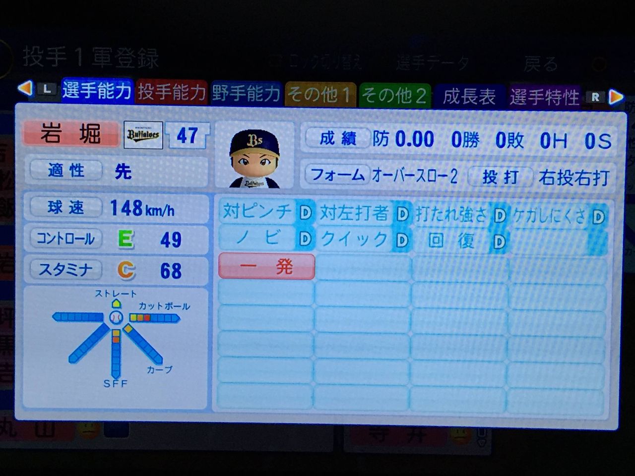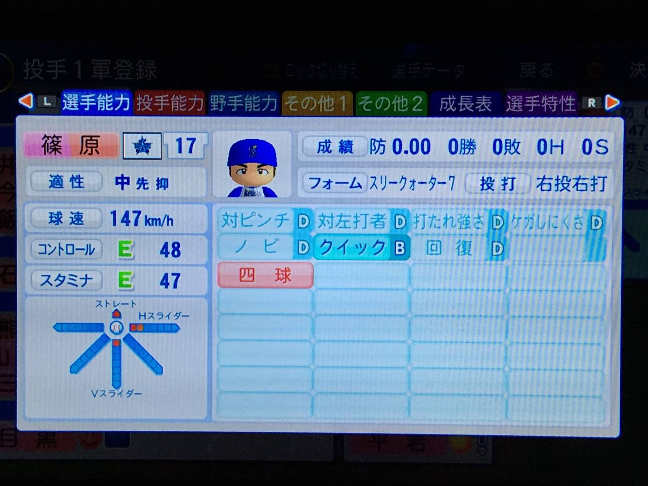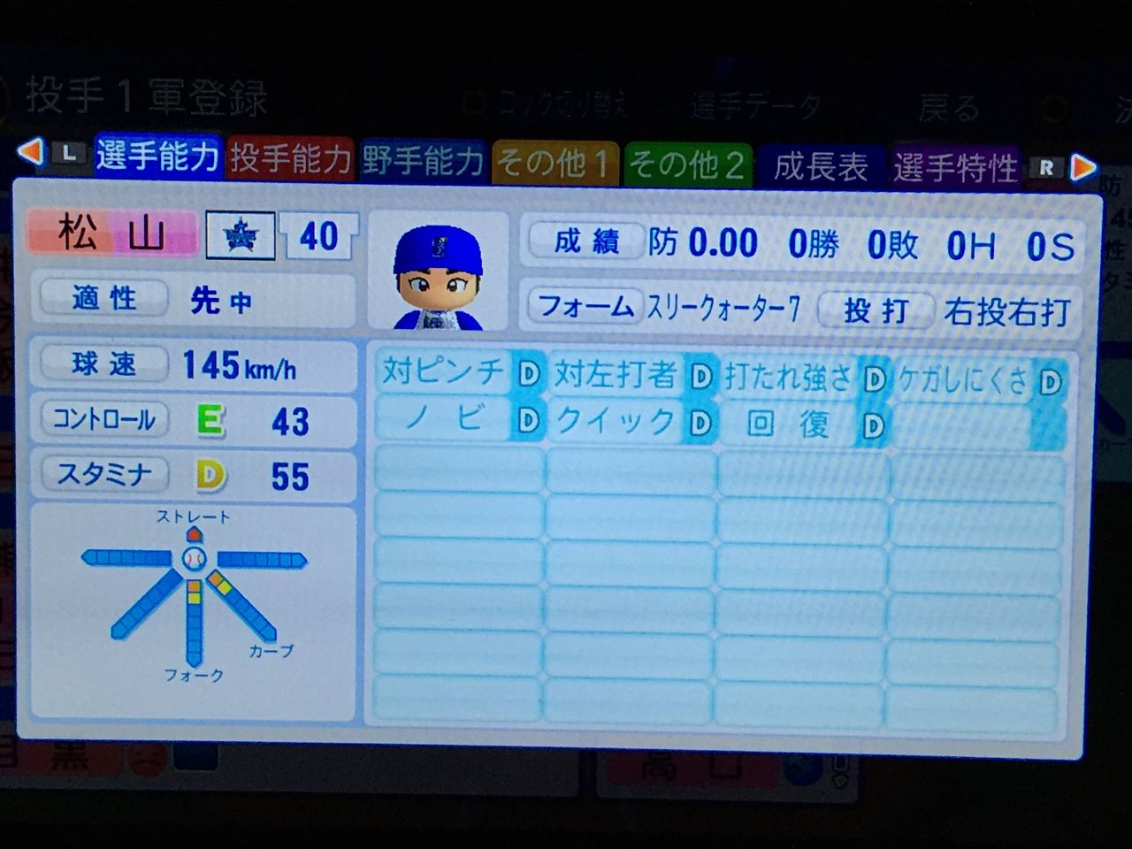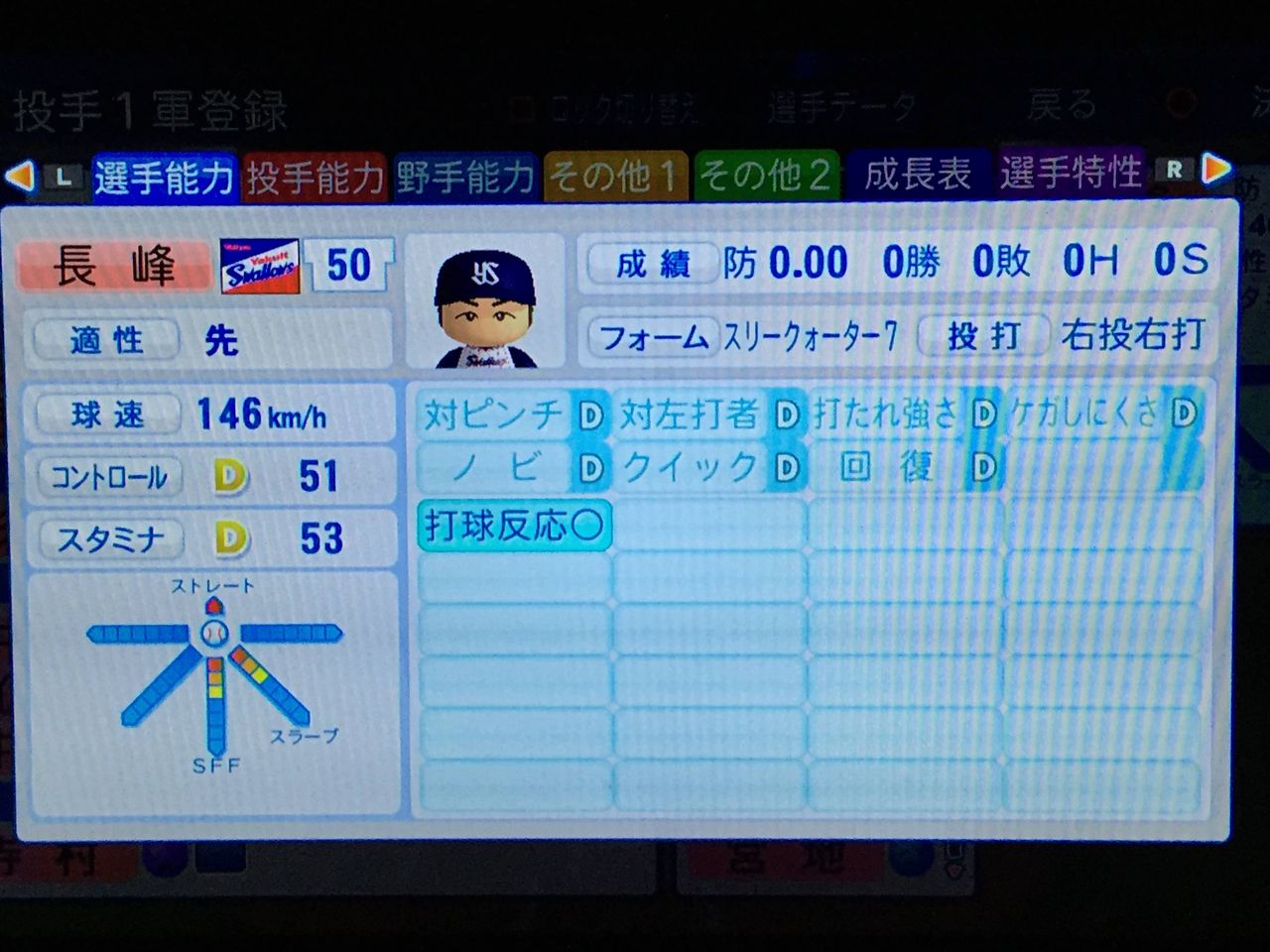 3戸叶(22、先) ロマン型先発。ノーコンだがそれ以外は完成度は高い
