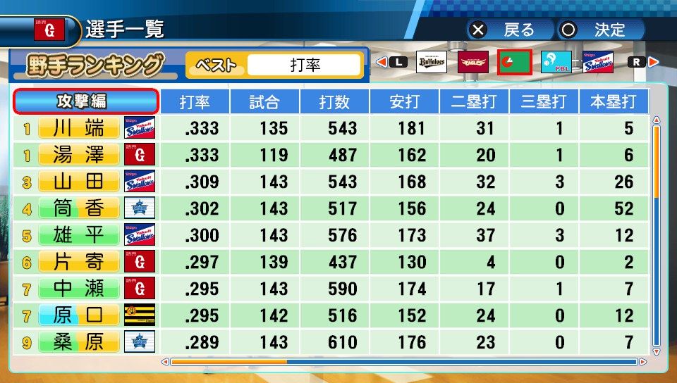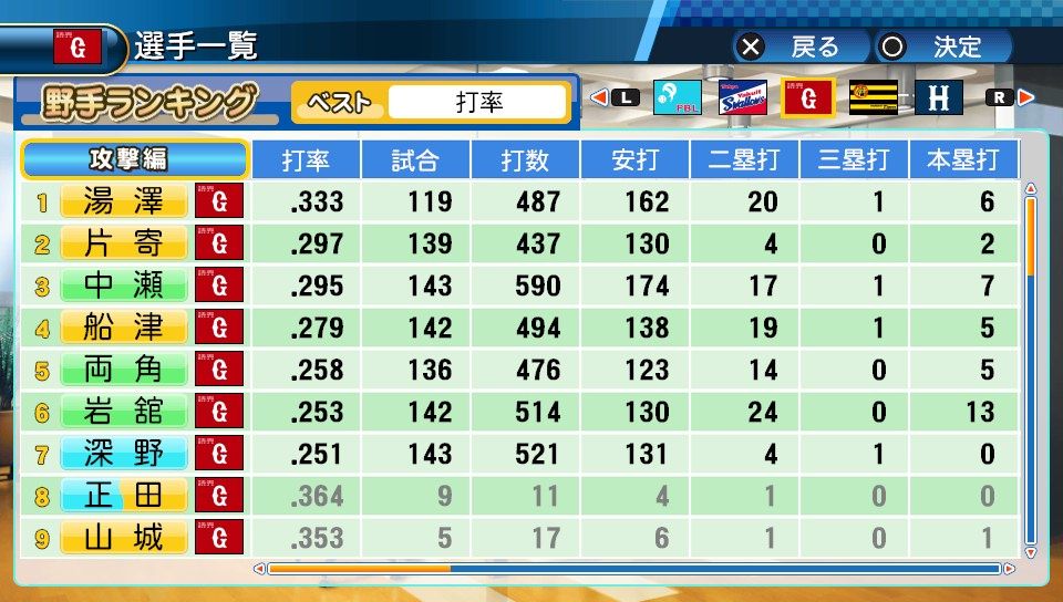 登板数でソートした奴2枚と小野田のいる打撃成績