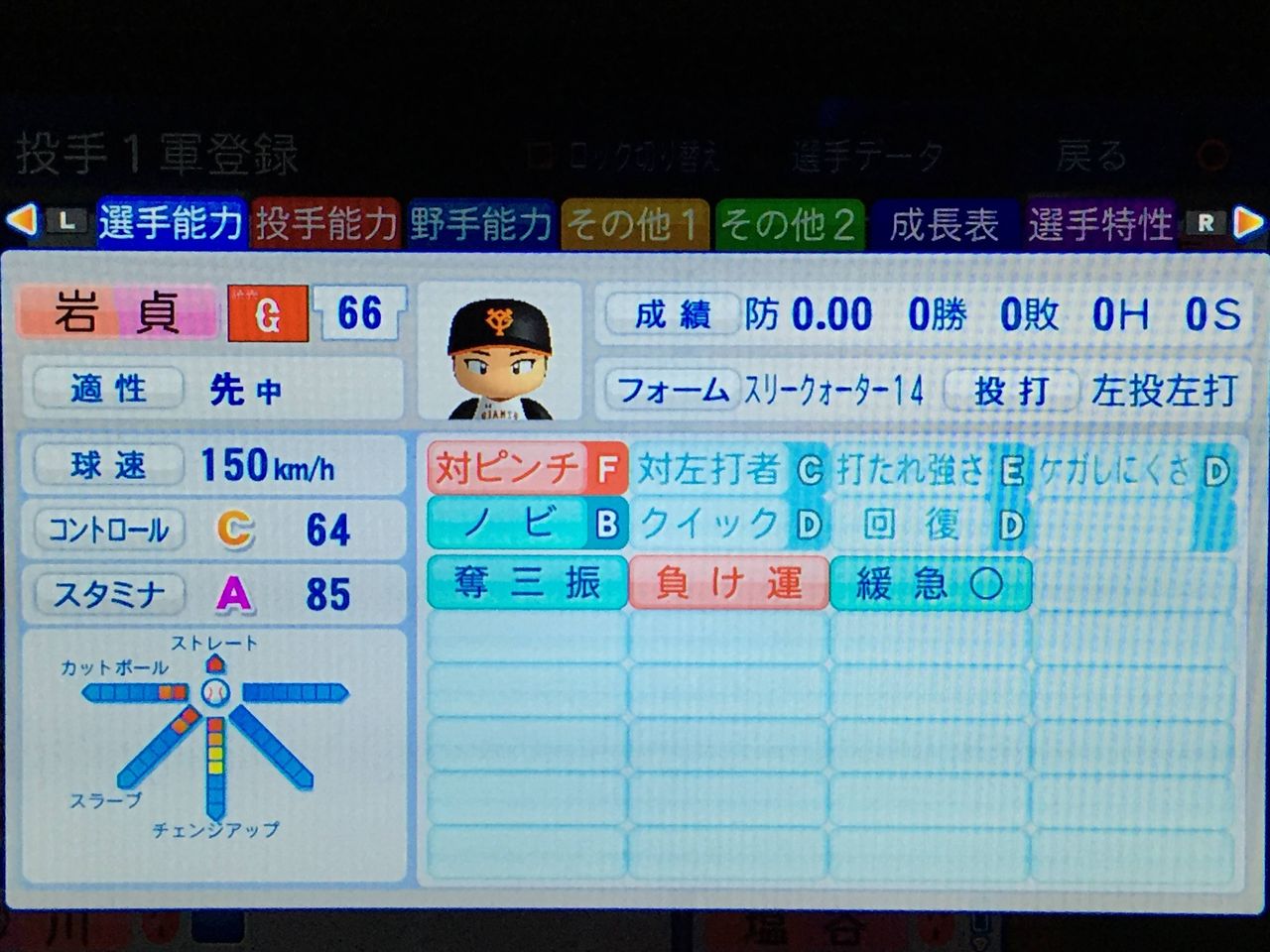 中継ぎ 依田 148 DE 15201 対左打者C、ケガしにくさC