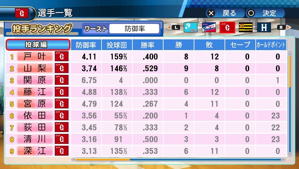 戸叶 148 FB 20102 回復C、逃げ球、緩急○、ポーカーフェイス