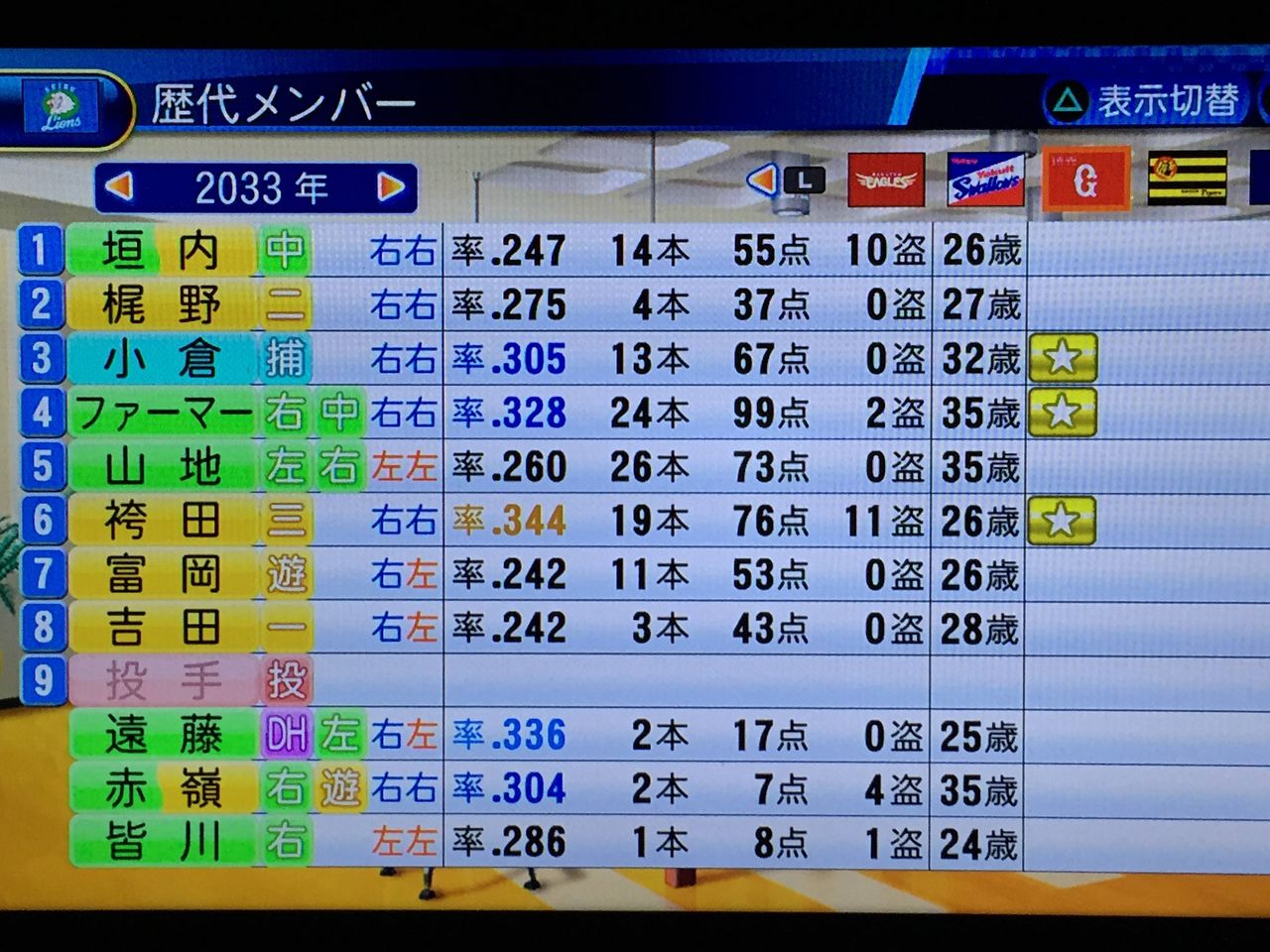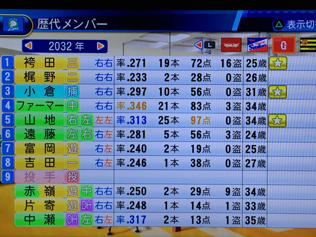 ファーマー首位打者とか相変わらずすげえな