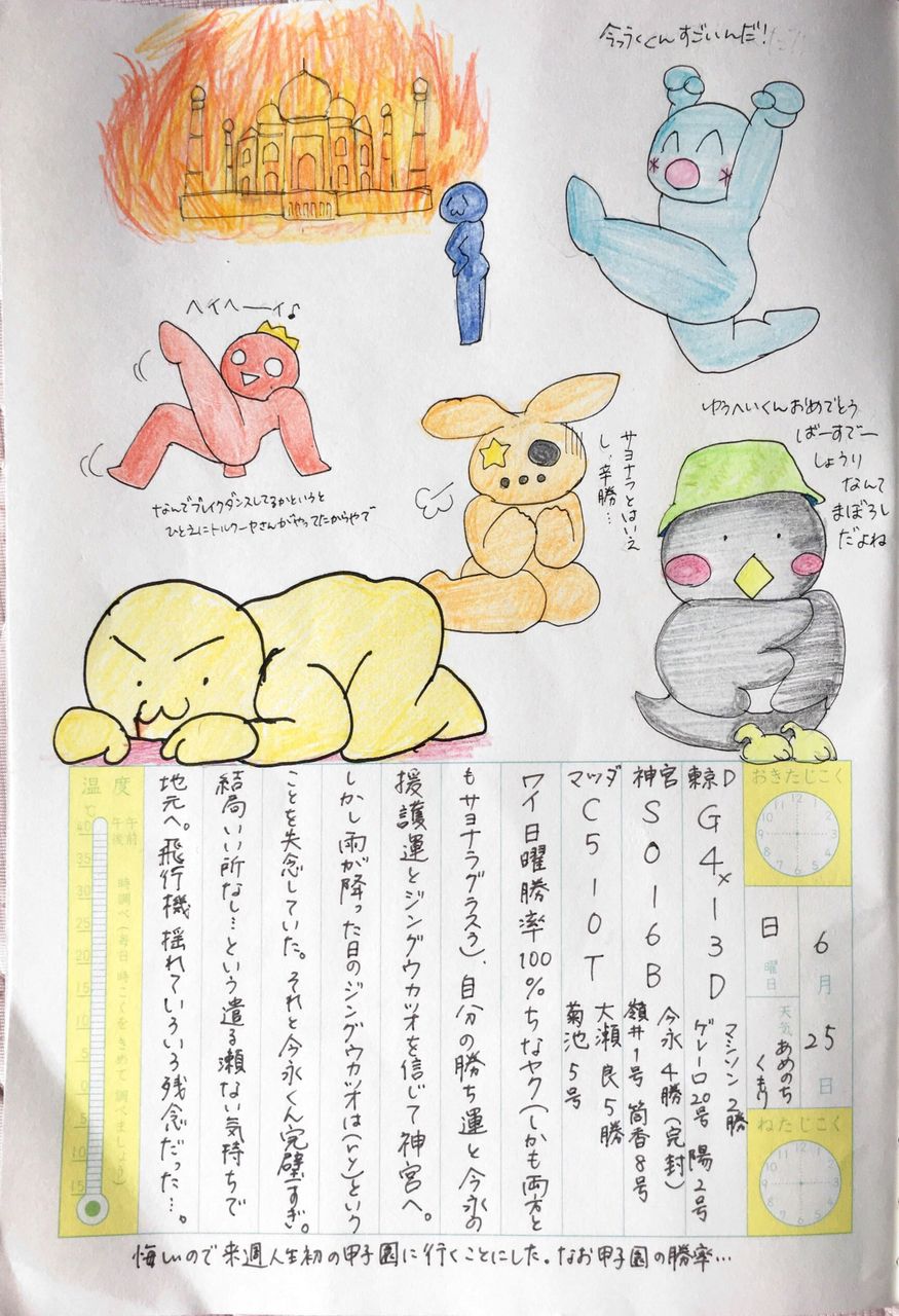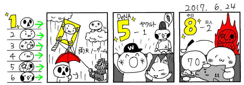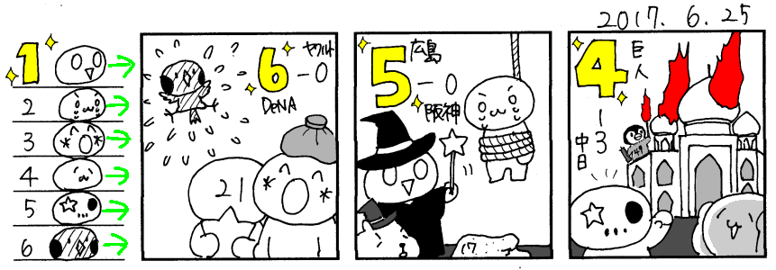 6/25(日) 巨 4-3 中 広 5-0 神 ヤ 0-6 D 日 0-6 楽 ソ 7-6 西 オ 5-1 ロ