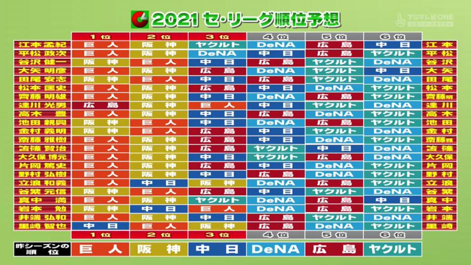 巨人が1位よりもヤクルトが最下位よりも、阪神が2位って予想の割合が一番高いの草なんだ