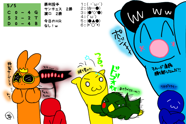 今年はセの方が優勢やね。シュウヘイが王様になっとるのかわヨ