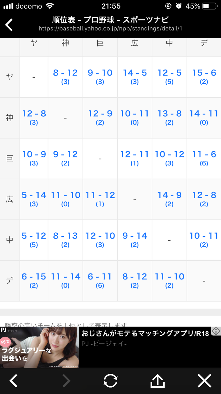 明日から主軸全員2軍に送るくらいしないとさすがに逆転は厳しいやろ…たぶん