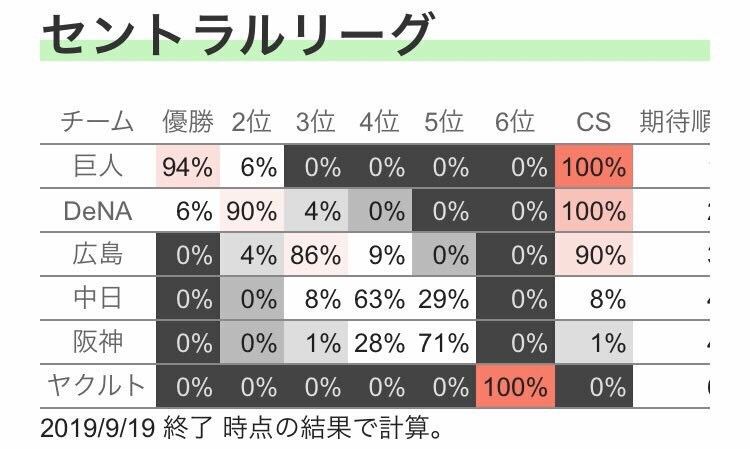 地味にヤク阪神のゲーム差縮んでるな
