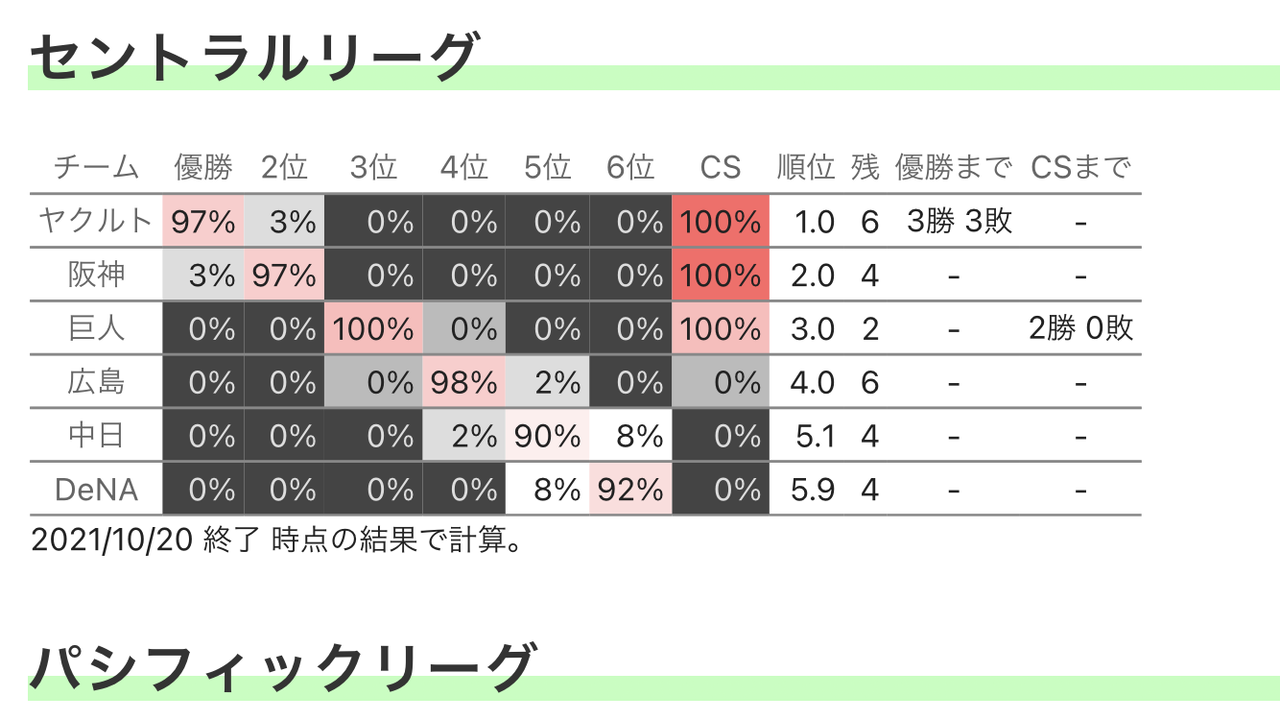 今年の優勝争いはマジでハイレベルやわ。10月もお互い勝率高いし