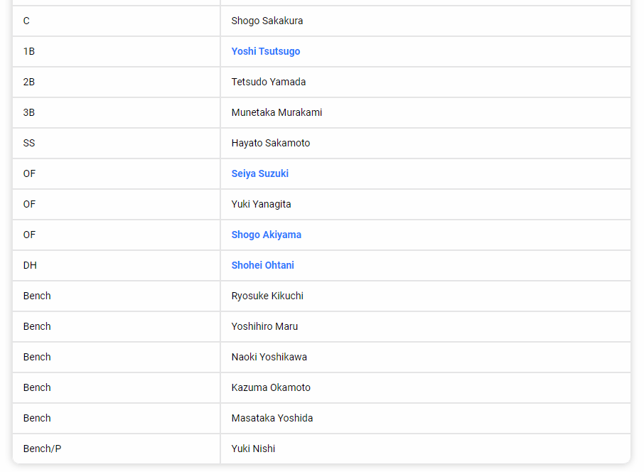 控え:菊池涼、丸、吉川尚、岡本、吉田正