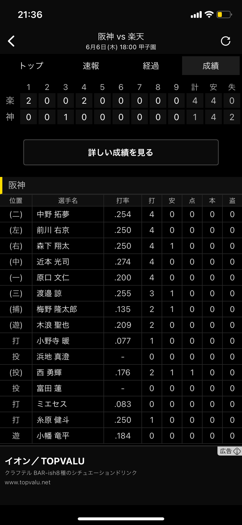 阪神主軸のいないこの打線でよく勝ててるよな