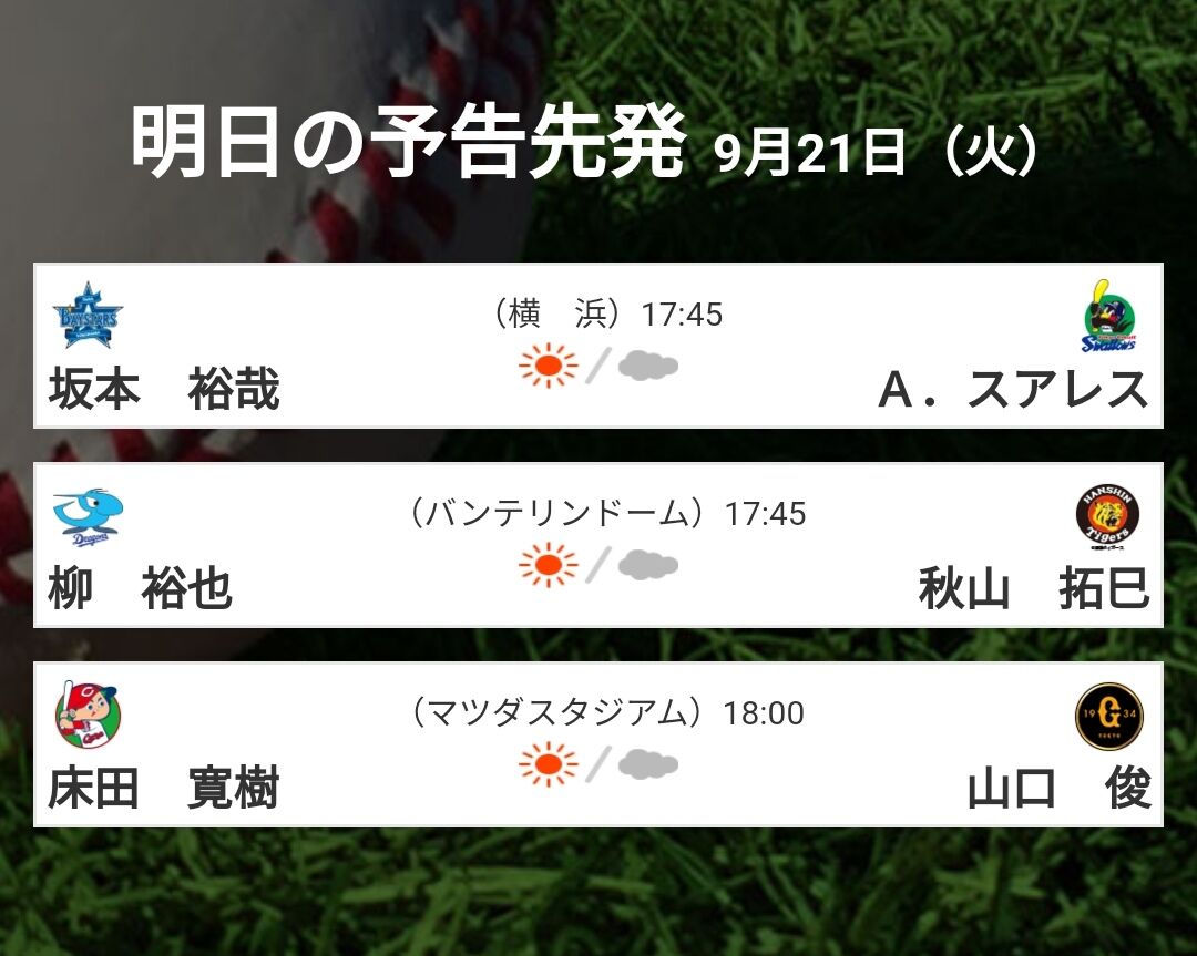 【9/21】神=-ヤ==巨==========-横=中=-広【順位スレ】