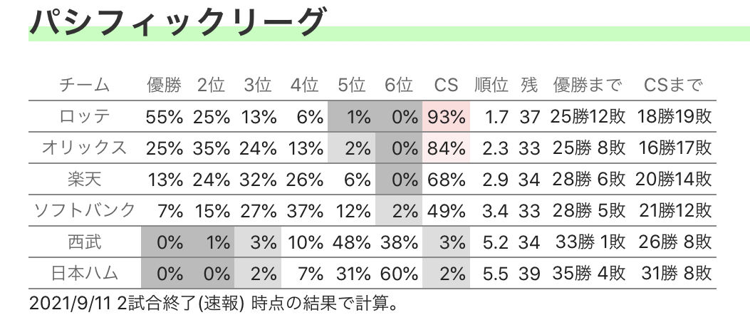 【パ順位スレ】ロ=オ===楽=-/ソ/=====西==日【9/11】