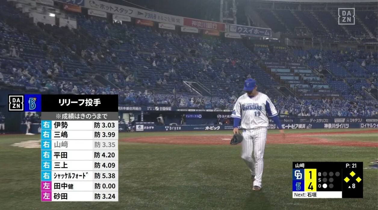 横浜 先発が5回も持ちません