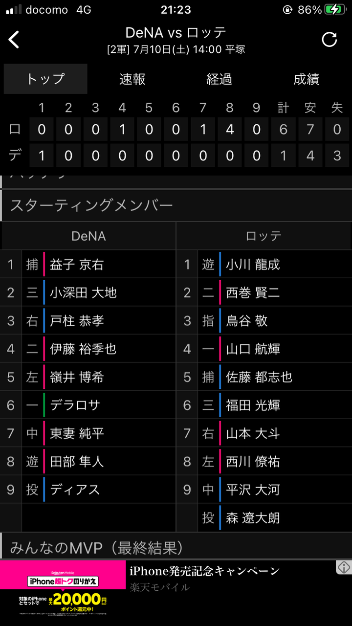 DeNAローテ逝く